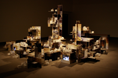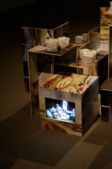 Archival materials from a 1913 planning proposal for the City of Regina form the basis for this exhibition which includes the participation of hundreds of city residents. Resident voices are heard in a soundscape, their hands are involved in the construction of the sculpture; paper building blocks are shaped by participant's hands and inflated with their breath. Videos showing the process of construction in the gallery form the cornerstones of the sculpture. The evolution of the city is echoed in the gallery space. |